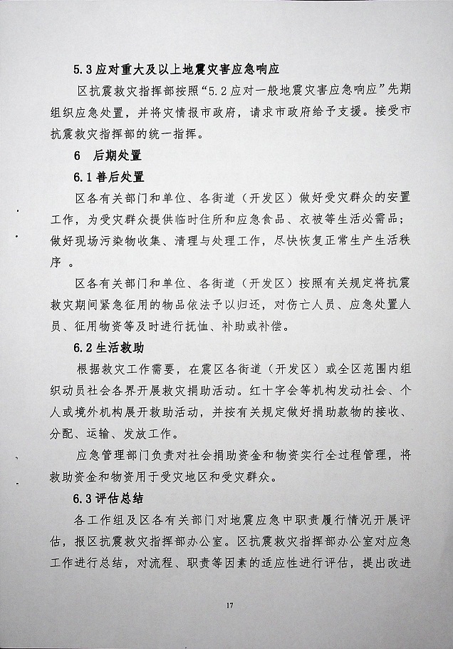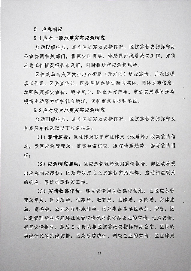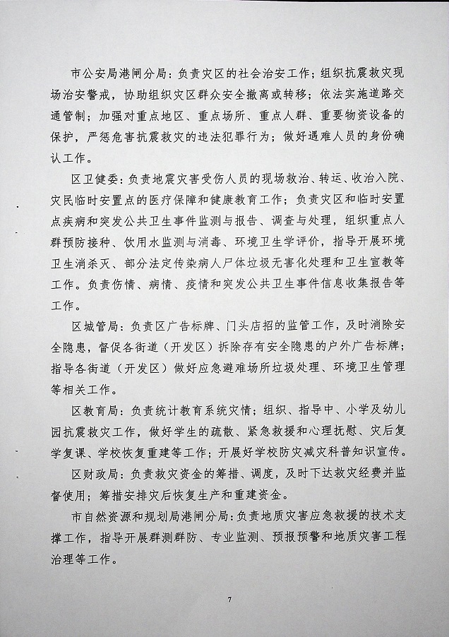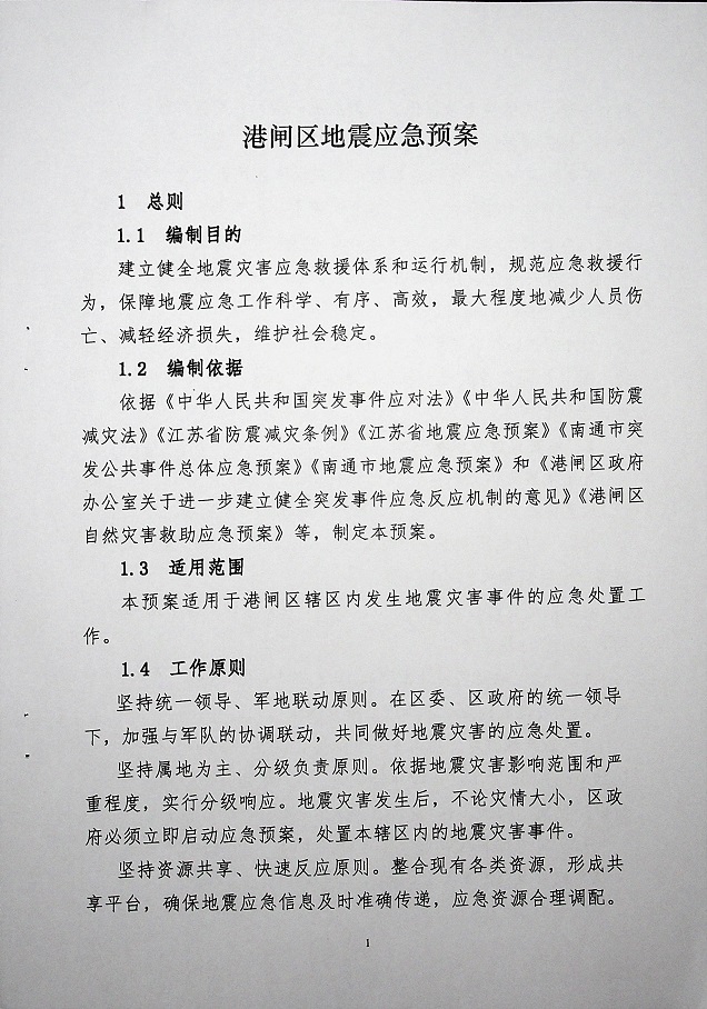 名稱: 區政府辦公室關于印發《港閘區地震應急預案》的通知