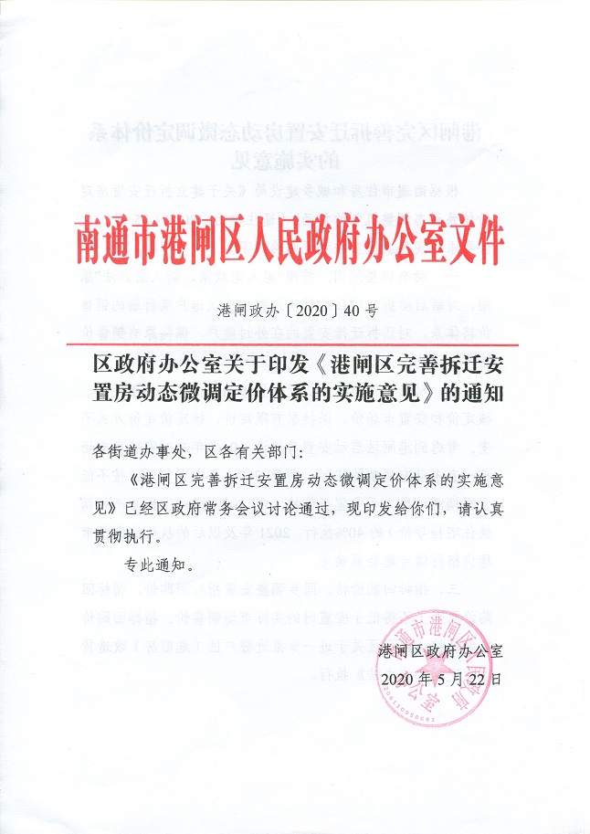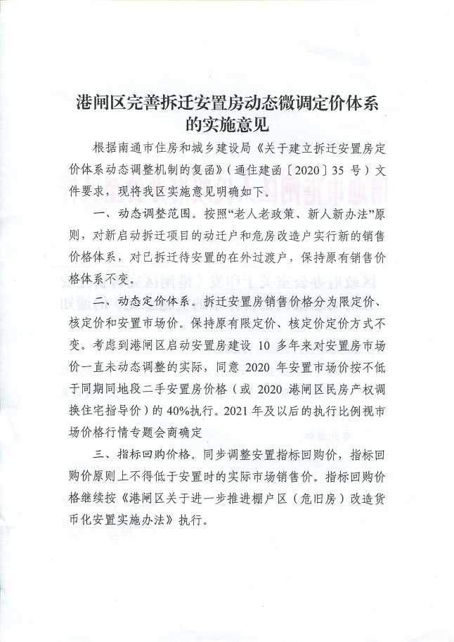 關于印發《港閘區完善拆遷安置房動態微調定價體系的實施意見》的通知