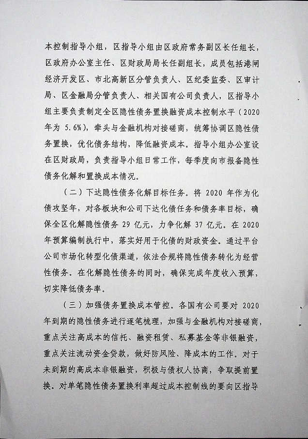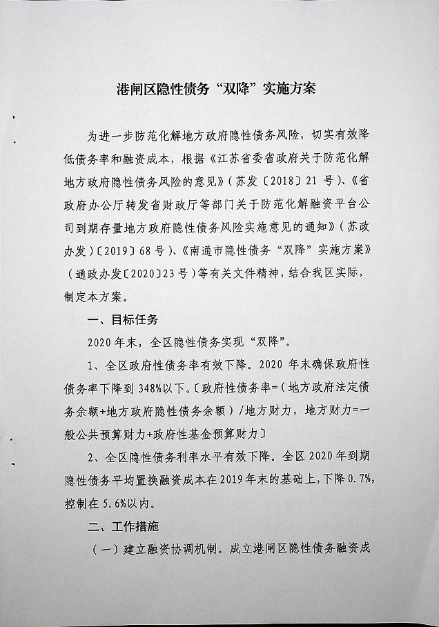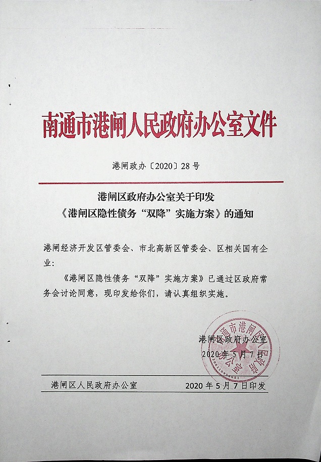 港閘區(qū)政府辦公室關(guān)于印發(fā)《港閘區(qū)隱性債務“雙降”實施方案》的通知