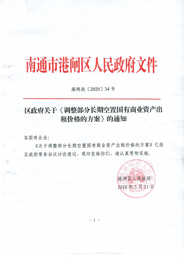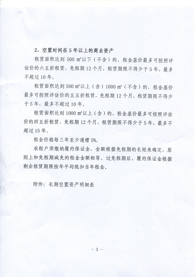 | 名稱: | 區政府關于《調整部分長期空置國有商業資產出租價格的方案》的通知 |
