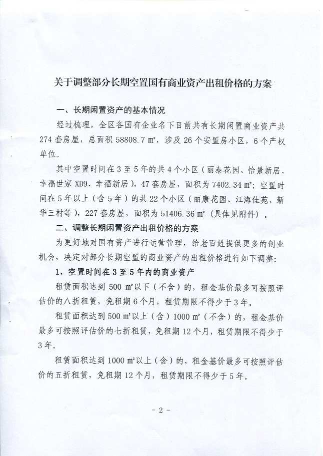 區政府關于《調整部分長期空置國有商業資產出租價格的方案》的通知