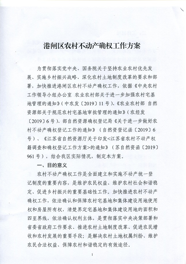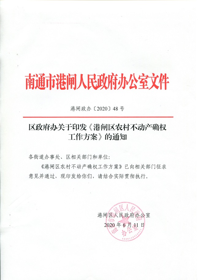 名稱: 關于印發《港閘區農村不動產確權工作方案》的通知